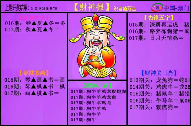 017期: 澳门六合宝典彩圖信封【紫财神报】每期自动更新